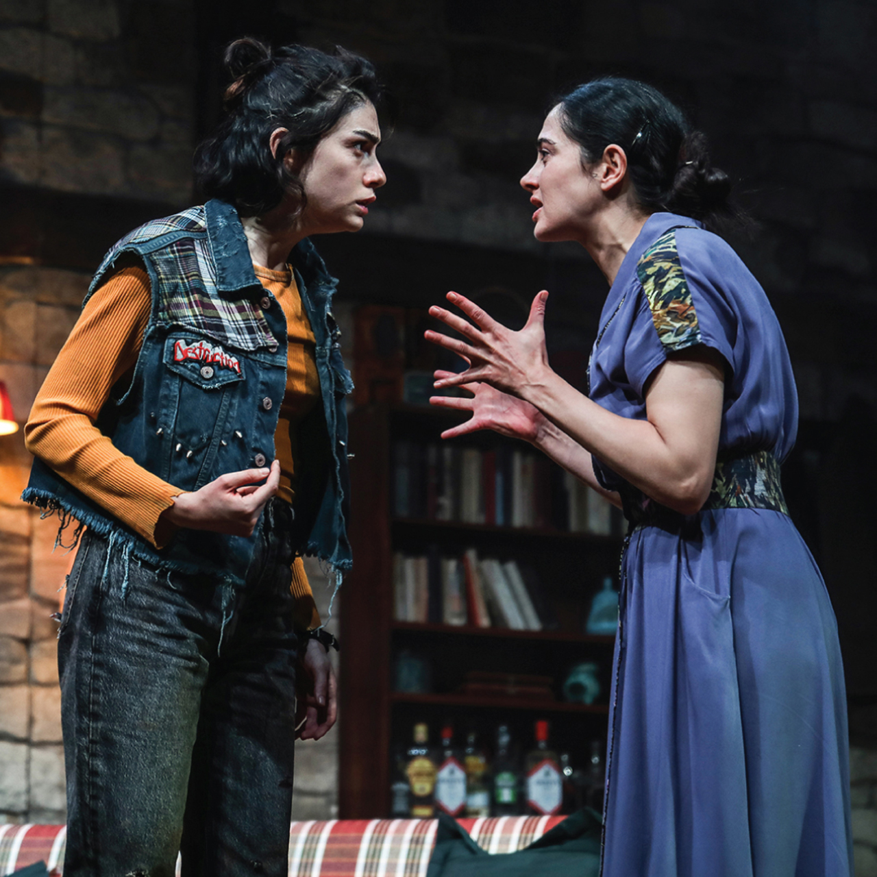 Sinema ve televizyondaki başarılarıyla adından sıkça söz ettiren ödüllü iki oyuncu Funda Eryiğit ve Hazar Ergüçlü, iki kızkardeşi canlandırdıkları Timsah Ateşi’yle tiyatro sahnesine de birlikte iz bıraktılar. Eryiğit’in Alannah karakterine hayat verdiği, Ergüçlü’nün ise Fianna karakterinde performans sergilediği oyunda ikilinin etkileyici oyunculuğuna babaları Peter Devlin karakteriyle Hidayet Erdinç eşlik ediyor.