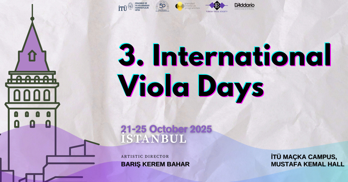 International Viola Society’nin (IVS) resmi bir parçası olan Turkish Viola Society (TVS) tarafından, İTÜ Türk Musikisi Devlet Konservatuvarı iş birliği ve D’Addario Orchestral desteğiyle düzenlenen etkinlik, konserlerden panellere, atölyelerden ustalık sınıflarına uzanan kapsamlı bir program sunuyor.