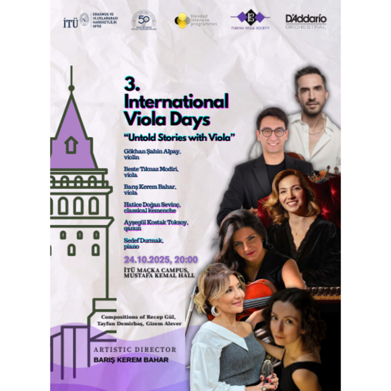International Viola Society’nin (IVS) resmi bir parçası olan Turkish Viola Society (TVS) tarafından, İTÜ Türk Musikisi Devlet Konservatuvarı iş birliği ve D’Addario Orchestral desteğiyle düzenlenen etkinlik, konserlerden panellere, atölyelerden ustalık sınıflarına uzanan kapsamlı bir program sunuyor.