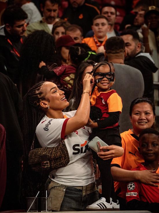 Stefanie Ladewig, Galatasaray’ın maçlarını, kızı ve ailesiyle birlikte stattan takip edip, sevgilisine destek veriyor.