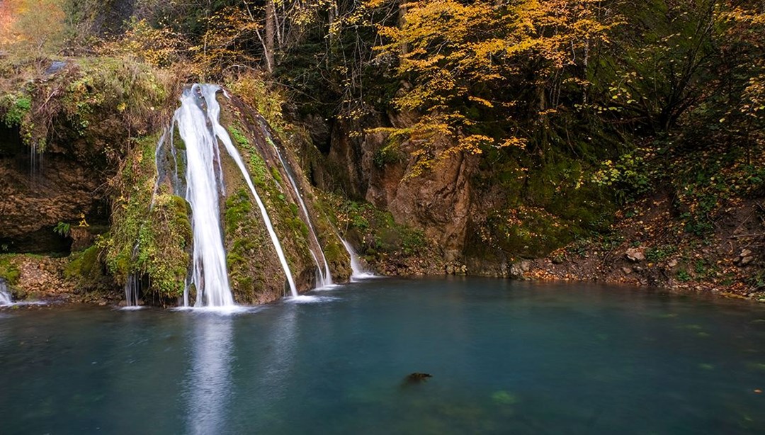 Saray köyünde yer alan şelale ve çevresindeki ormanlar, sonbaharda yeşil, sarı ve kahverenginin tonlarıyla mevsimin eşsiz güzelliklerini sunuyor.